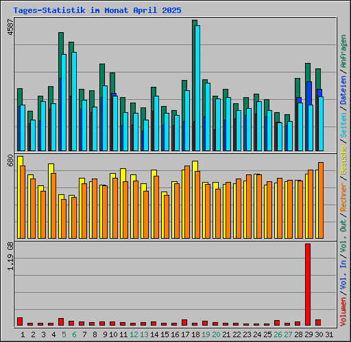| Tages-Statistik im Monat April 2025 | ||||||||||||||||
